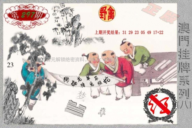 | 298期:琴棋书画【琴画书】开羊23准 |
